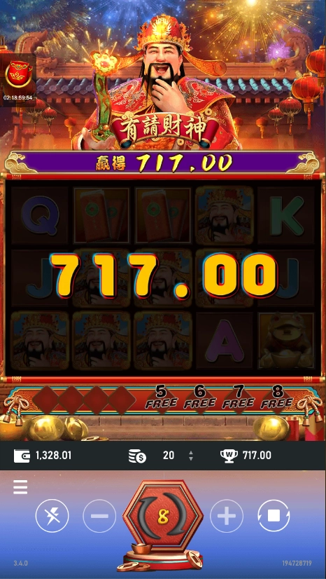 由 RSG 電子遊戲商打造的《有請財神》,是一款以東方喜氣風格為主題的線上老虎機遊戲。遊戲設計有 20 條支付線,最高可贏取 4000 倍彩金,返還率約 96.7%,屬於高波動、高福利的娛樂選擇。透過連鎖消除機制與免費遊戲模式,搭配隨機觸發的「喜從天降」寶箱活動,增添多重驚喜與爆分潛力。